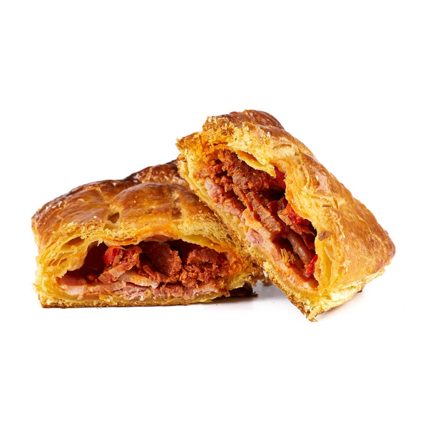 Empanada hornazo de bacon ahumado, chorizo curado, huevo cocido, lomo y pimiento rojo.